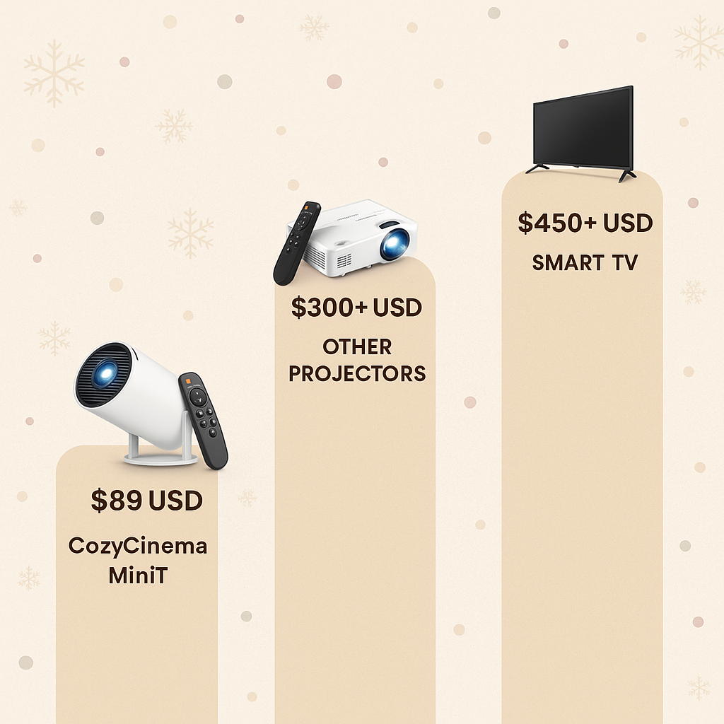 Winter is here — and nothing feels better than warm blankets, soft lights, and your favorite movie glowing on the wall.
